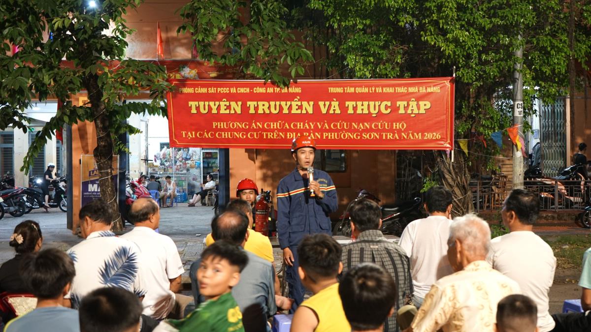 "Lửa bốc lên ngùn ngụt, khói đen bao trùm, hàng chục cư dân hoảng loạn tìm đường thoát thân..." - Đây là tình huống giả định tại buổi diễn tập của Đội CC & CNCH Khu vực 2 (Phòng Cảnh sát PCCC và CNCH Công an TP Đà Nẵng) phối hợp với Trung tâm quản lý và khai thác nhà Đà Nẵng tổ chức tại chung cư Vịnh Mân Quang vào đêm 13/4.