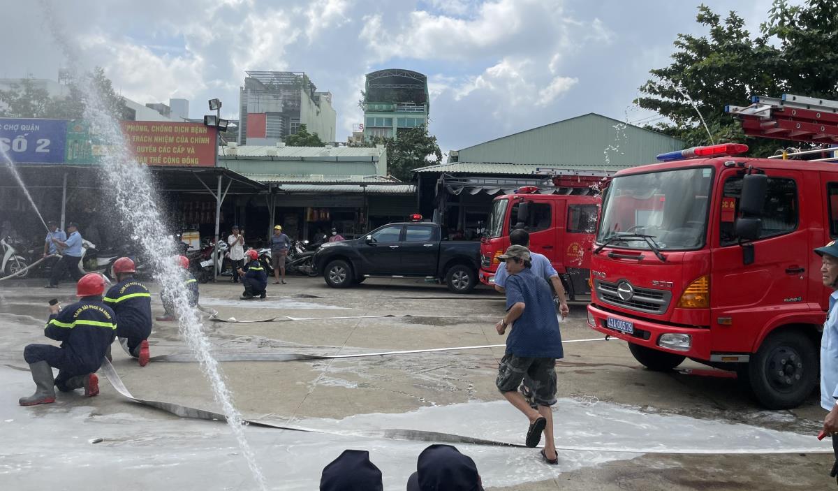 Diễn tập phòng cháy chữa cháy tại chợ Hòa An