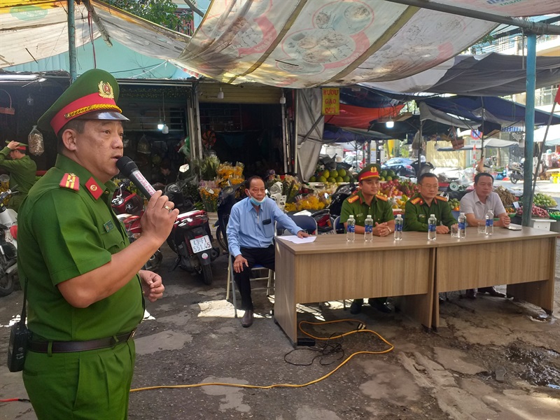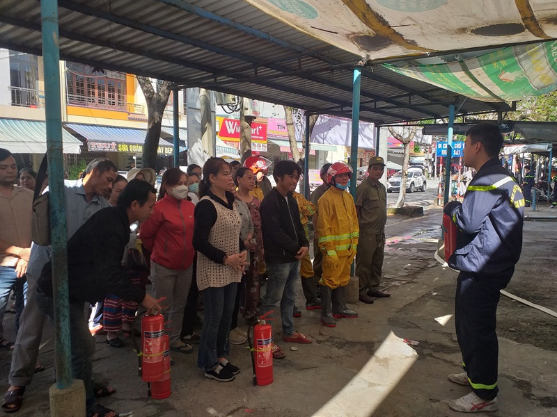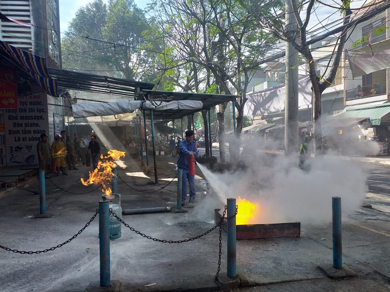 Trước khi diễn ra buổi diễn tập, CBCS Đội Cảnh sát PCCC&CNCH Công an quận Thanh Khê đã tuyên truyền, phổ biến pháp luật về PCCC, hướng dẫn công tác an tòa PCCC cho bà con tiểu thương tại chợ; đồng thời phổ biến quy trình xử lý tình huống khi xảy ra cháy, nổ. Bên cạnh đó, cán bộ chữa cháy chuyên nghiệp còn hướng dẫn các tính năng, tác dụng các phương tiện, dụng cụ chữa cháy hiện có và cách sử dụng.