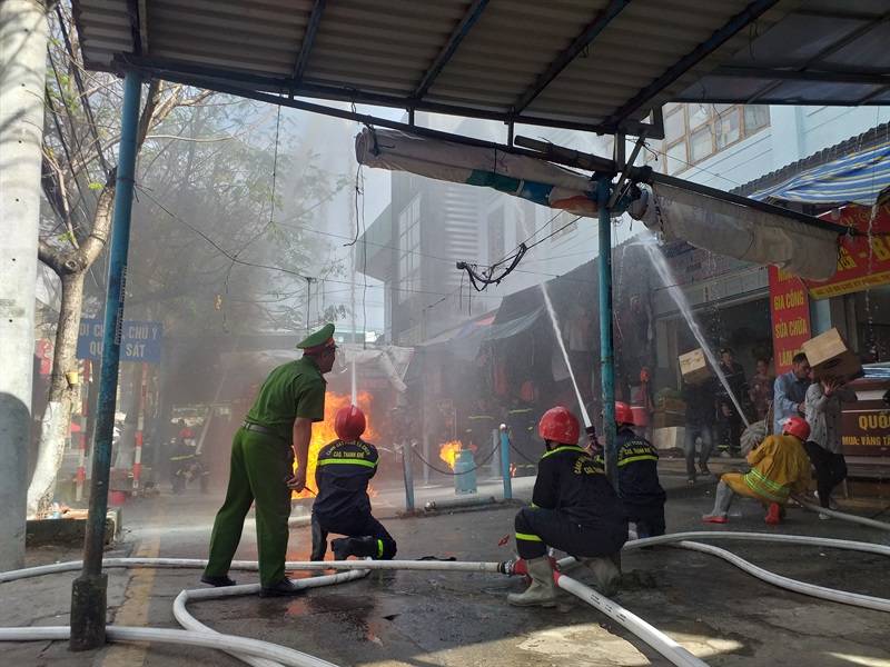 Diễn tập phương án PCCC & CNCH chợ Quán Hộ