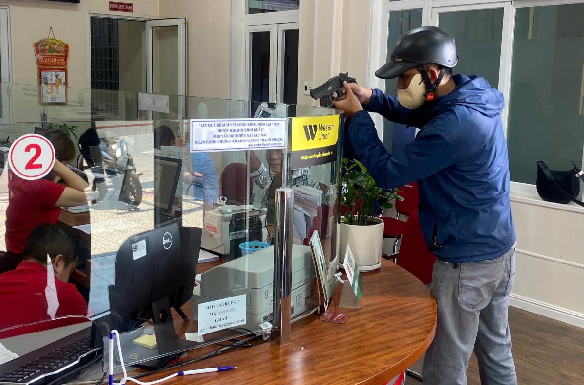 Theo tình huống giả định, vào 10 giờ 30 cùng ngày, hai đối tượng nam cao khoảng 1,7m, mặc quần jean, áo khoác, đeo khẩu trang, điều khiển xe máy Yamaha Exciter mang biển kiểm soát giả xuất hiện trước phòng giao dịch, giả làm khách hàng đến giao dịch rồi bất ngờ rút súng khống chế nhân viên bảo vệ, nhanh chóng đột nhập vào bên trong nhằm thực hiện hành vi cướp tài sản. Lợi dụng sơ hở của các đối tượng, một nhân viên phòng giao dịch đã nhanh chóng nhấn nút thông báo khẩn cấp.