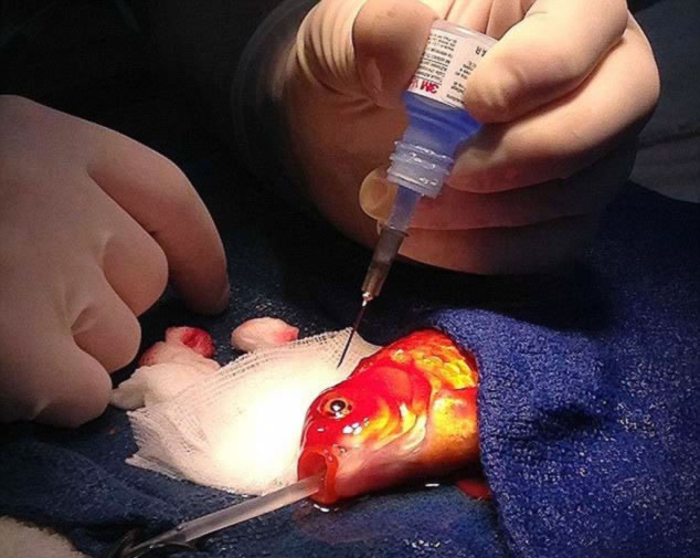 Một chủ sở hữu vật nuôi tận tụy chi 300 bảng Anh cứu sống con cá vàng của mình sau khi nhận thấy nó loại bỏ chất thải rất khó khăn. Người này đem cá đến một trung tâm thú y ở North Walsham, Norfolk, và bác sĩ Faye Bethell cẩn thận sử dụng thuốc gây mê để phẫu thuật loại bỏ khối u gần lưng con cá. Chú cá hồi phục 50 phút sau đó.