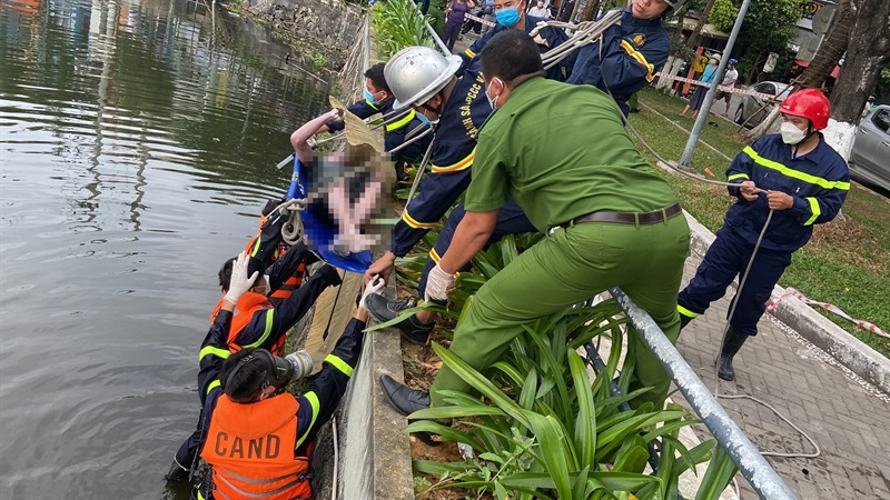Vụ việc được người dân trình báo lên Công an quận Thanh Khê để xử lý. Đội Cảnh sát PCCC và CNCH Công an quận xuất 2 xe chuyên dụng cùng 14 cán bộ, chiến sĩ đến hiện trường tiến hành vớt thi thể nạn nhân. Thi thể được đưa lên tại khu vực đường Tản Đà, nằm trong khuôn viên bờ hồ và bàn giao cho các lực lượng khác tiến hành khám nghiệm.