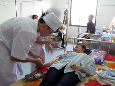 Em Lê Thị Mỹ Duyên được đưa vào BVĐK H. Lộc Hà cấp cứu...