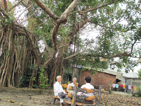 Cây đa hơn 100 năm tuổi trong khuôn viên đình làng Yến Nê. |