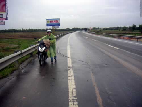 - NXD không đi không biết, chính sự trống vắng, thưa người là điều kiện lý tưởng để đinh tặc “tác nghiệp”. Không thể thống kê bao nhiêu xe máy đi qua đường này mỗi ngày nhưng có một điều số người dắt bộ trên đường ngày càng nhiều. Trong một cơn mưa vào cuối tháng 9, khi qua cầu Câu Lâu mới, xe Hai Nhà báo bỗng dưng bị chao đảo. Hai đoán xe bị thủng, dừng xe và dò ra cây đinh còn mới cứng dài chừng 3cm. Hai dắt bộ một đoạn, nhìn xuống những vũng nước, đinh nằm rải rác khắp nơi. Cùng cảnh ngộ với Hai, một xe máy chở theo con nhỏ đã bị xẹp lốp. Tiến thoái lưỡng nan, Hai chấp nhận chạy bằng vành, và đến nơi vá xe thì cả lốp và ruột xe nát cả.