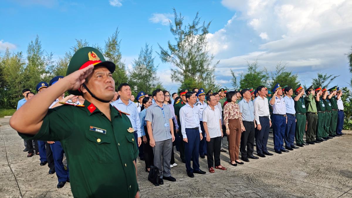 Ngay từ sáng sớm, tàu 390 của Bộ Tư lệnh Vùng Cảnh sát biển 2 đã cơ động cập bến đưa đoàn công tác gồm đại biểu các tỉnh, thành phố: Quảng Trị, Quảng Ngãi, Gia Lai, Huế và Đà Nẵng lên đảo. Trong không khí trang nghiêm, Đoàn đã dự Lễ chào cờ tại cột cờ trên đảo Lý Sơn, biểu tượng chủ quyền thiêng liêng của Tổ quốc trên vùng biển đảo tiền tiêu.
