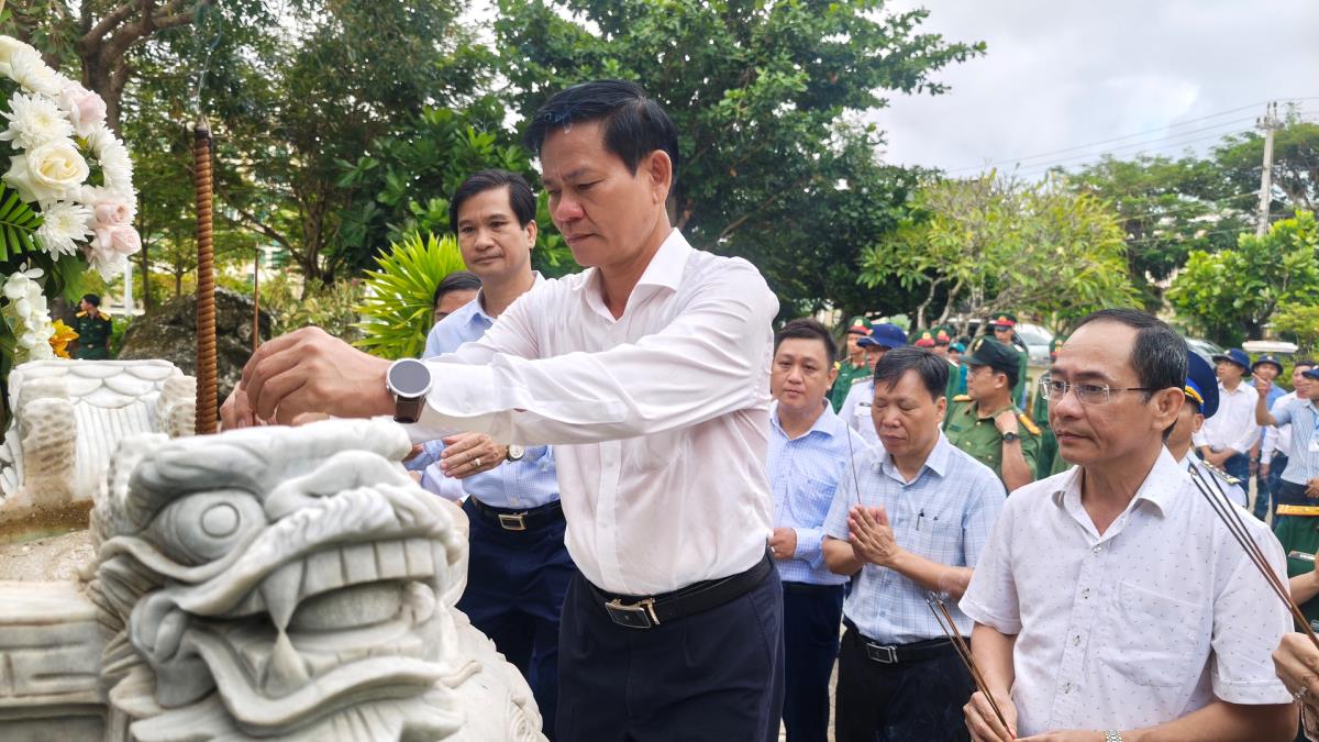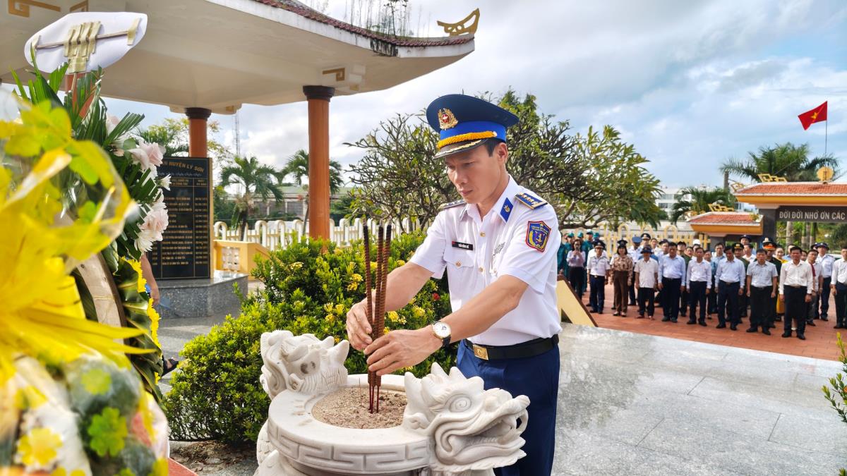 Tiếp đó, Đoàn đã đến dâng hương, tưởng niệm các anh hùng liệt sĩ tại Nghĩa trang Liệt sĩ đặc khu Lý Sơn và Đài tưởng niệm Đội Hoàng Sa kiêm quản Bắc Hải, tri ân công lao của các thế hệ cha ông đã ngã xuống để bảo vệ chủ quyền biển đảo. Tại đây, các đại biểu đã cùng ôn lại truyền thống vẻ vang của những người dân Lý Sơn – hậu duệ của hải đội Hoàng Sa năm xưa, những người mang trong mình khát vọng giữ gìn biển đảo thiêng liêng của Tổ quốc.