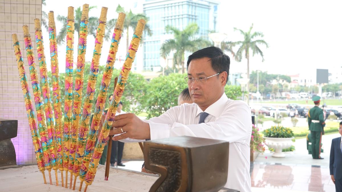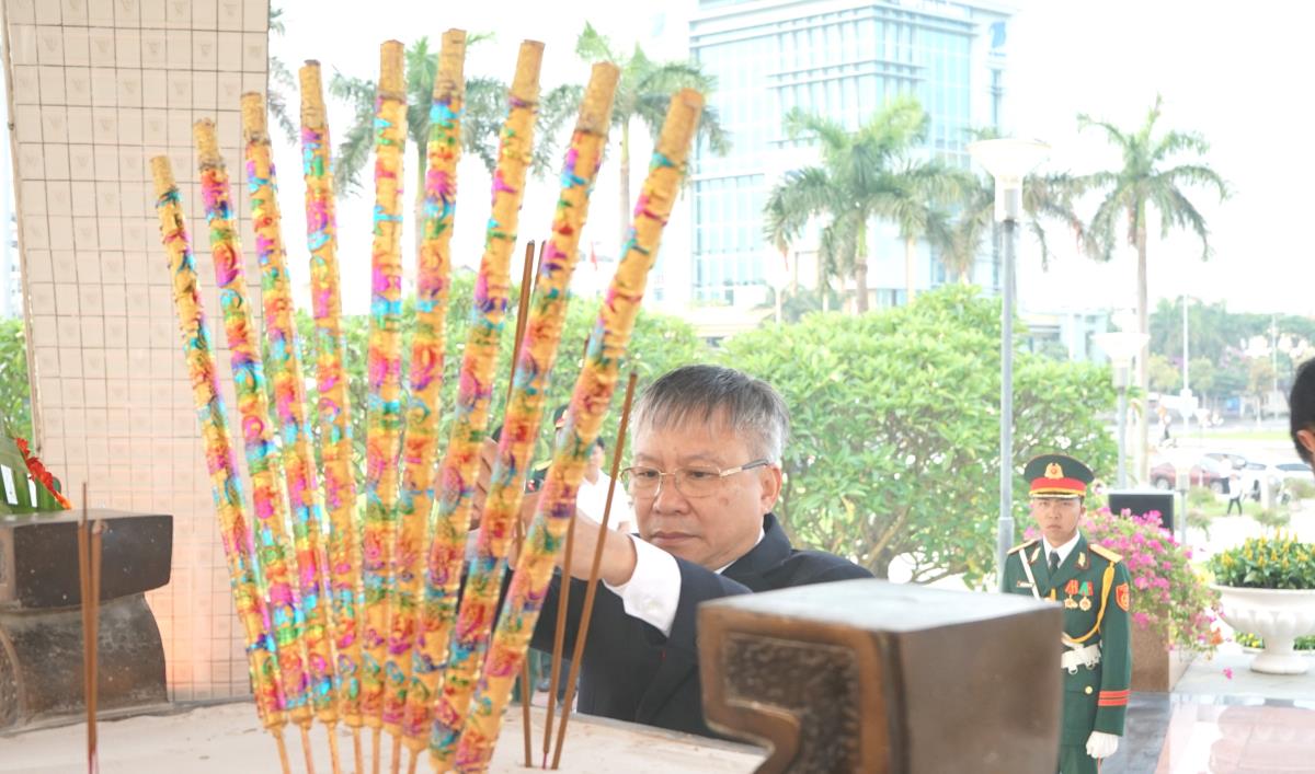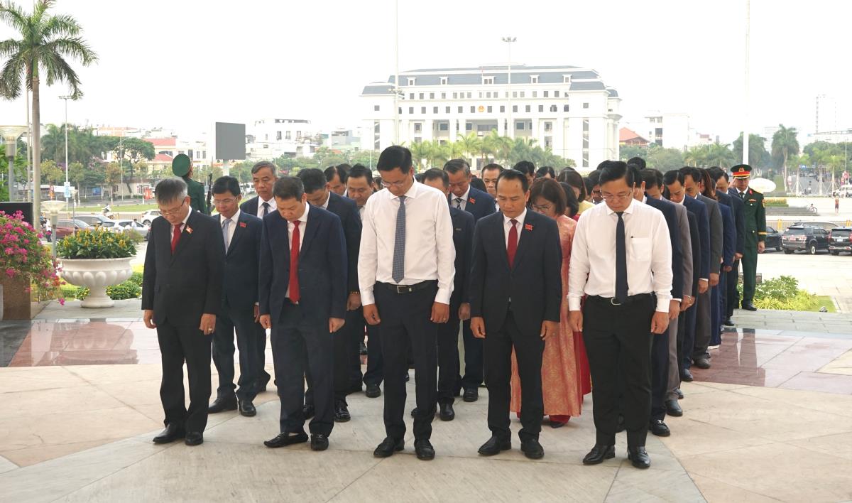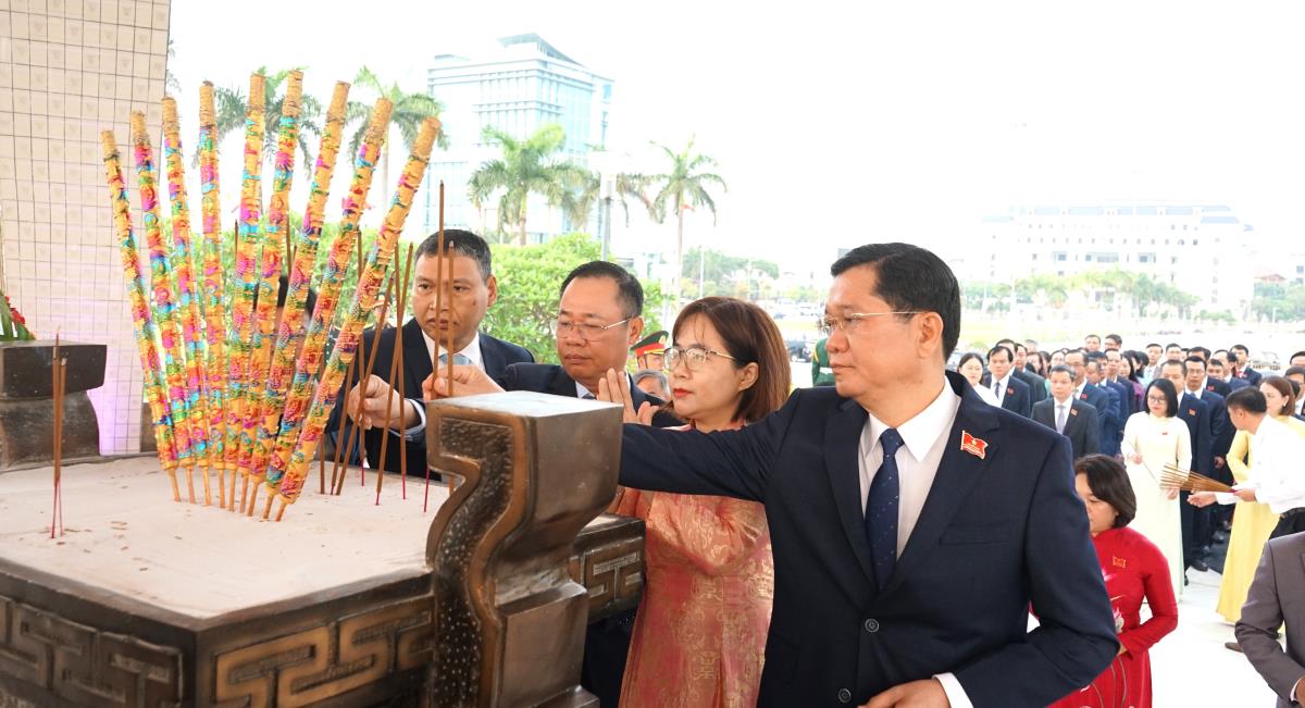 Đoàn đại biểu HĐND do Ủy viên Trung ương Đảng, Bí thư Thành ủy Lê Ngọc Quang và Phó Bí thư Thành ủy, Chủ tịch HĐND thành phố Nguyễn Đức Dũng dẫn đầu làm lễ dâng hương tưởng niệm các anh hùng liệt sỹ tại Đài tưởng niệm thành phố.