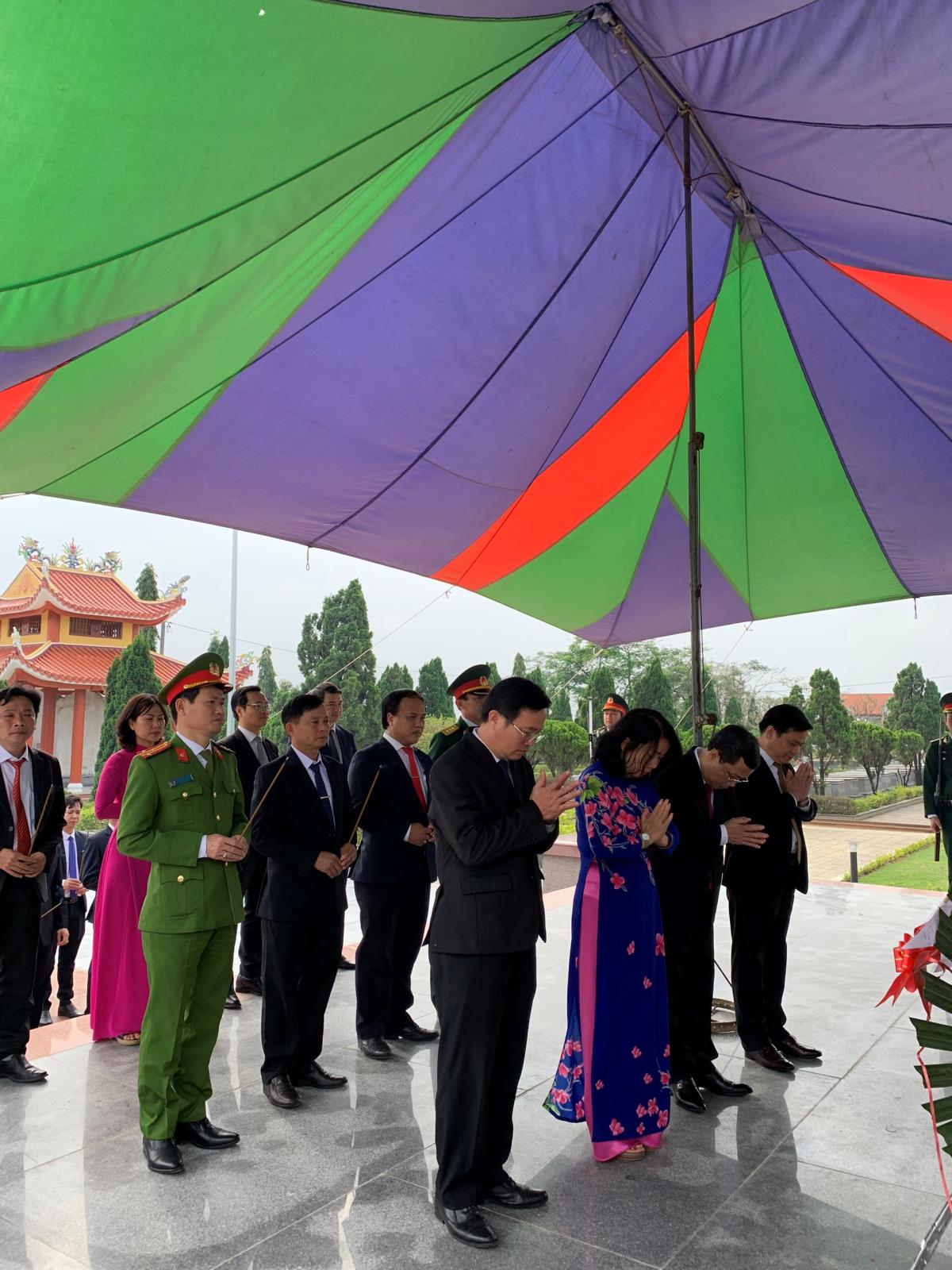 Vòng hoa của các đoàn đều mang dòng chữ “Đời đời nhớ ơn các Anh hùng, Liệt sĩ”.