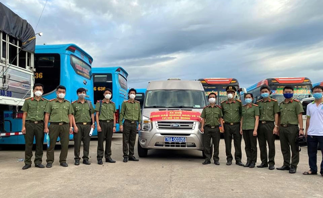 Đoàn có 48 thành viên do Thượng tá Trần Minh Hưng, Trưởng phòng An ninh Chính trị nội bộ Công an tỉnh Quảng Ngãi làm Trưởng đoàn cùng 13 nhân viên y tế, 10 tình nguyện viên của Tỉnh đoàn, 5 sĩ quan An ninh, phóng viên An ninh Quảng Ngã và 20 lái xe của Cty TNHH Chín Nghĩa); cùng 3,5 tấn hàng do Đoàn Thanh niên Công an tỉnh Quảng Ngãi gửi vào; khi về trước mắt đón nhận 200 người dân Quảng Ngãi từ TPHCM.