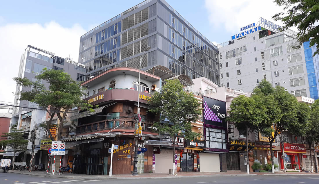Đường Bạch Đằng, tuyến đường du lịch nổi tiếng của Đà Nẵng với hàng trăm hàng quán phục vụ du khách cũng “không một bóng người”. |