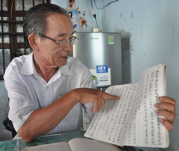 Ông Trần Ngọc Vinh và "cuốn gia phả" bằng chữ Nho của làng Nam Ô.