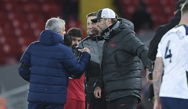 Mourinho châm chích Klopp khi kết thúc trận đấu. |