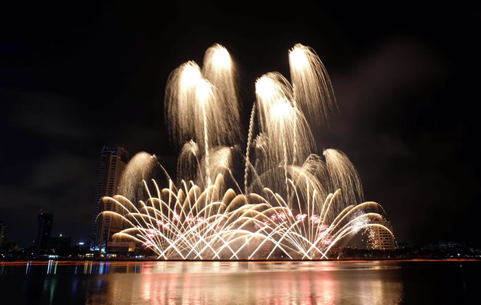 (Cadn.com.vn) - Với sự tung hứng của màu sắc và âm nhạc, đội thi Howard & Sons Pyrotechnics (Australia) đã khẳng định mình là một trong những nhà thiết kế và sản xuất pháo hoa nổi tiếng nhất trên thế giới bằng màn trình diễn đầy cao trào. Khác với nhiều đội thi, Howard & Sons Pyrotechnics là Cty pháo hoa gia đình nên sự hoà hợp trong trình diễn là bí quyết thành công của họ.