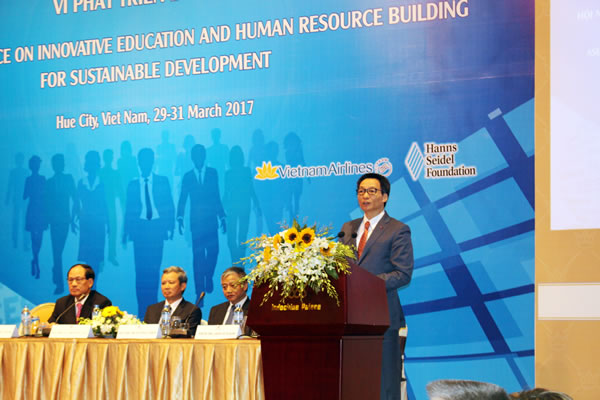 Mở đầu bài phát biểu tại hội nghị, Phó Thủ tướng Vũ Đức Đam chia sẻ: Dù cách nói, cách thể hiện khác nhau, nhưng dân tộc nào cũng coi sự học, sự nghiệp giáo dục là quan trọng, là rất quan trọng, có ý nghĩa quyết định đối với tương lai của dân tộc mình, của đất nước mình. Theo Phó Thủ tướng Vũ Đức Đam, giáo dục đào tạo (GD-ĐT) là một trong 17 mục tiêu phát triển bền vững của Liên hợp quốc và điều đáng nói trong 16 mục tiêu còn lại, ít nhiều đều liên quan tới GD- ĐT.