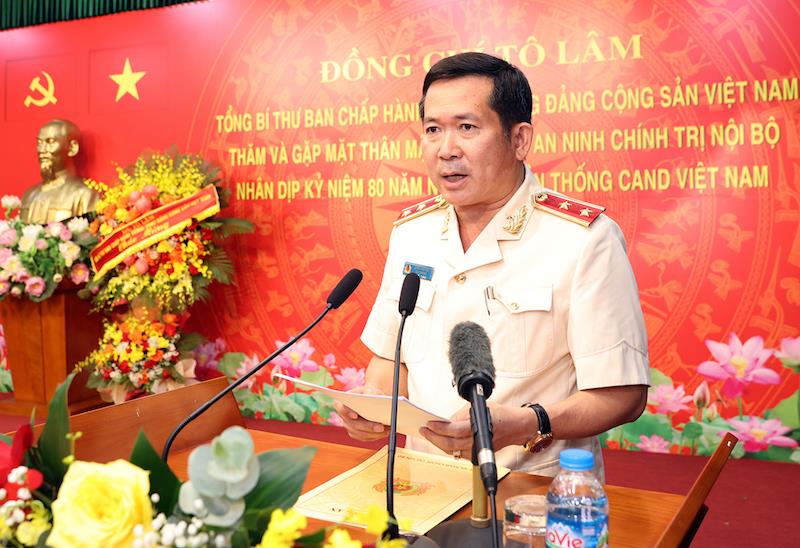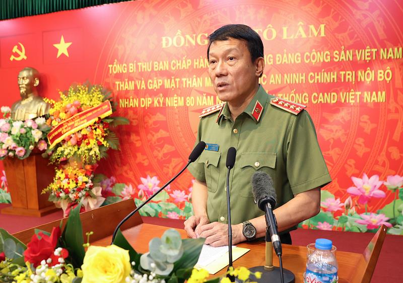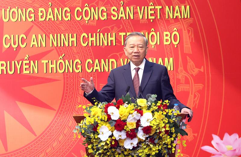 Phát biểu tại buổi gặp mặt, thay mặt lãnh đạo Đảng, Nhà nước, Tổng Bí thư Tô Lâm ghi nhận, đánh giá cao, biểu dương những thành tích, kết quả mà Cục An ninh chính trị nội bộ và lực lượng An ninh chính trị nội bộ đã đạt được trong thời gian qua.
