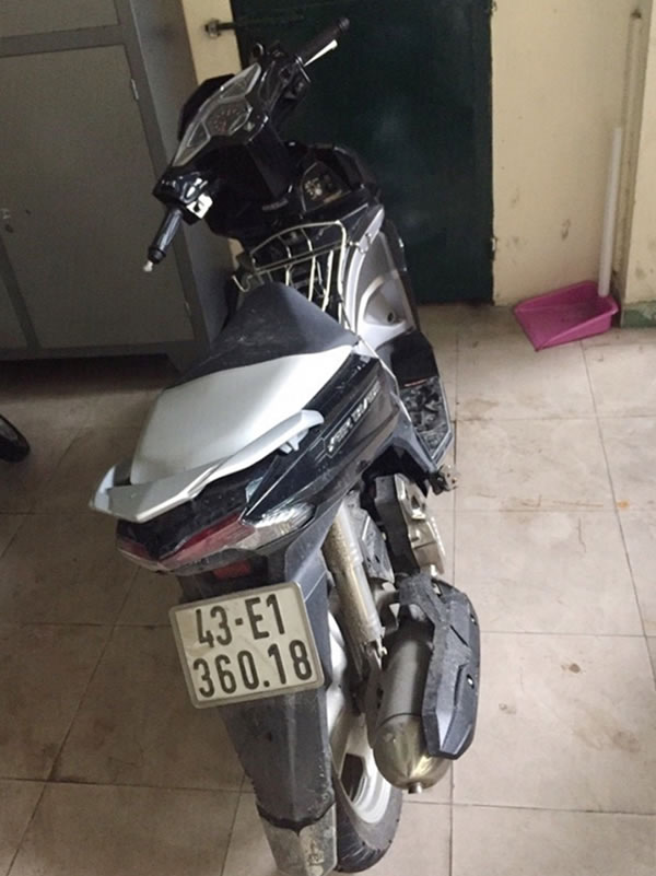 Xe máy, công cụ hỗ trợ Thắng dùng đánh anh Long. |