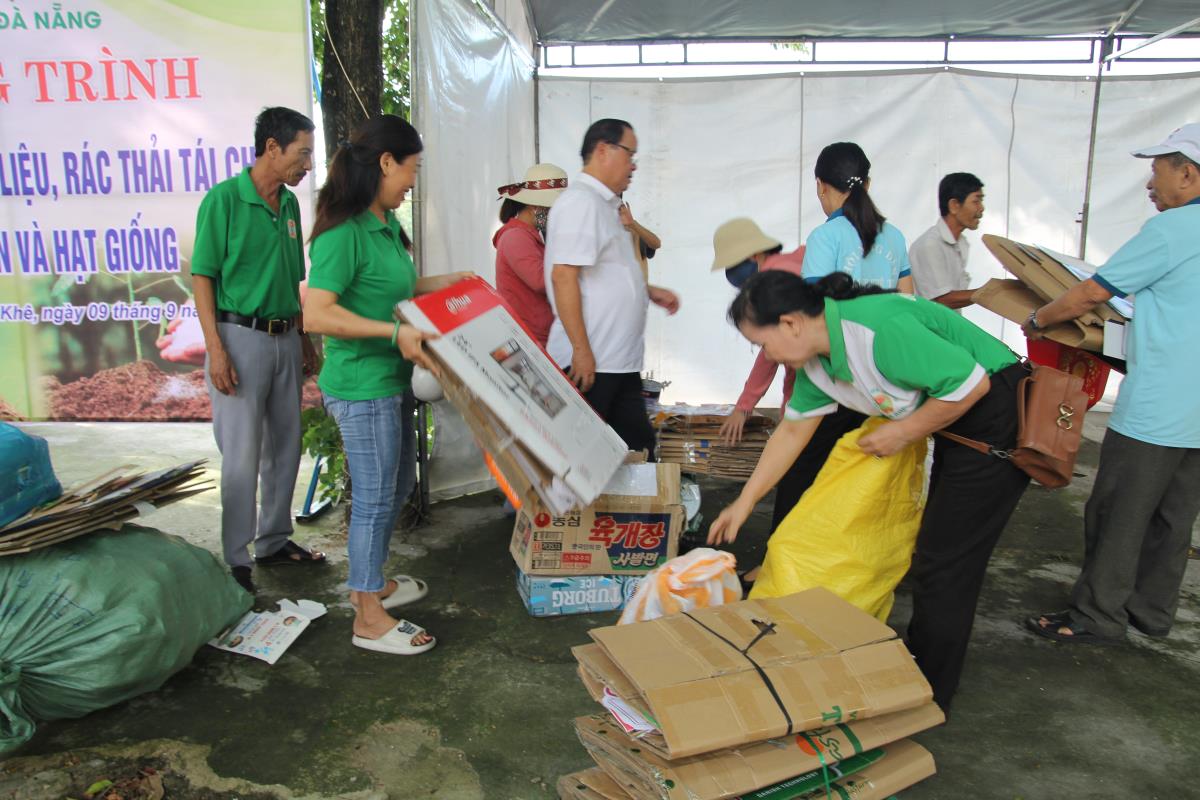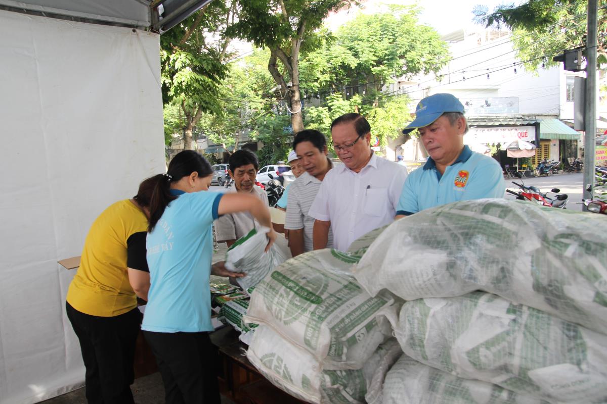 Ngay sau lễ khai mạc, đông đảo hội viên Hội Nông dân các phường đã tập trung đến các quầy được Hội Nông dân Q.Thanh Khê bố trí để đổi rác thải lấy phân bón và hạt giống.