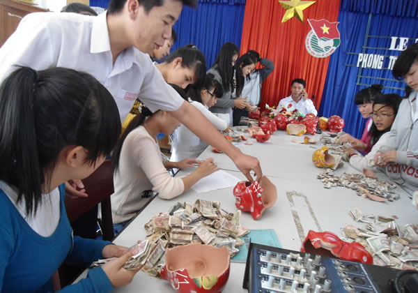 | “Nuôi heo đất tiết kiệm” là phong trào đầy tính nhân văn được tổ chức hiệu quả nhiều năm qua tại Trường Ngũ Hành Sơn. |