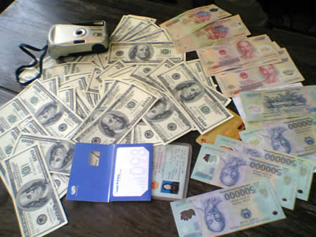 Tiền, vàng và ngoại tệ trong vụ cướp ở Vinh. |