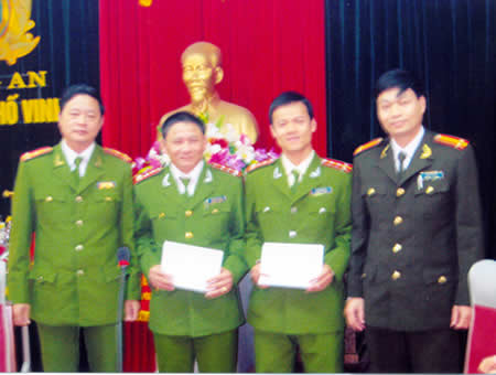 (Cadn.com.vn) - Nhận được tin đại úy Trần Thành Vinh và đại úy Trần Việt Thắng - cán bộ hình sự CATP Vinh, bị Tôn Thất Tùng - đối tượng có 1 tiền án về tội trộm cắp tài sản và bị nhiễm HIV giai đoạn cuối dùng bơm tiêm tấn công, ngày 17-3, thiếu tướng Võ Trọng Thanh - Giám đốc CA tỉnh Nghệ An đã ký quyết định khen thưởng mỗi đồng chí 2 triệu đồng nhằm động viên tinh thần mưu trí dũng cảm trong đấu tranh chống tội phạm. Được biết, hiện các anh đang được kiểm tra, điều trị chống phơi nhiễm tại Trung tâm Y tế Dự phòng Nghệ An.