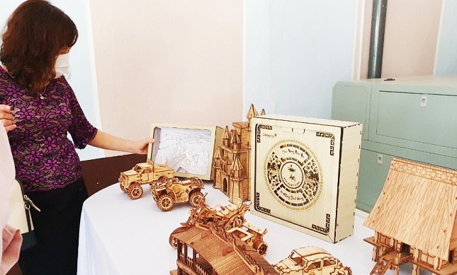 Các sản phẩm lưu niệm bằng gỗ của Cơ sở sản xuất gỗ mỹ nghệ Ngô Tấn Đức (H.Hòa Vang).