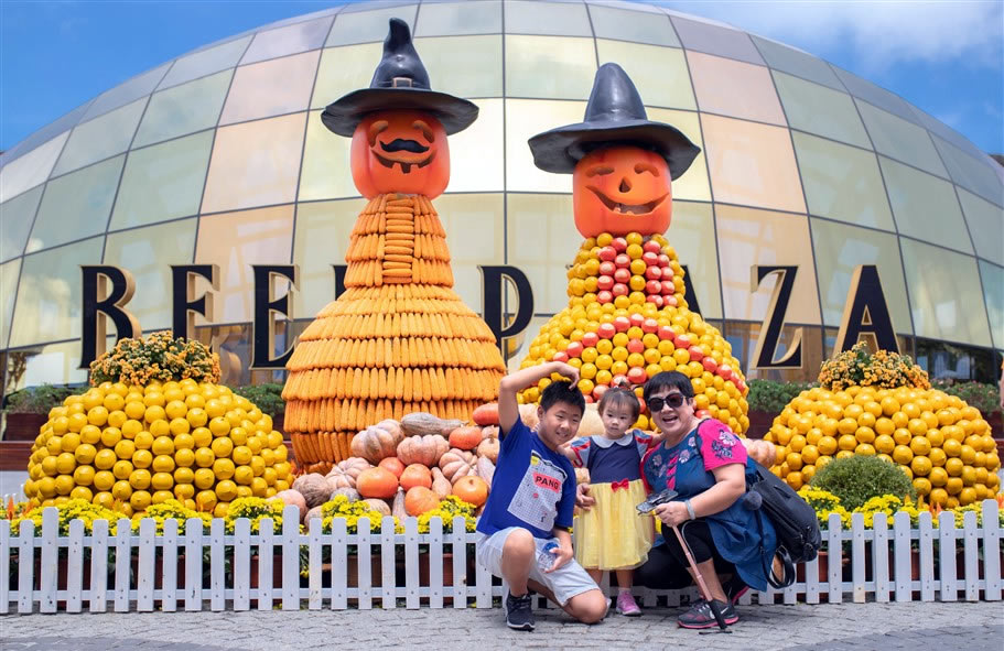 Quảng trường Beer Plaza những ngày này càng thêm rực rỡ, sôi động bởi sự xuất hiện của những đại cảnh, tiểu cảnh tạo hình từ bí ngô, vừa ngộ nghĩnh vừa ma mị, mang đậm chất Halloween.