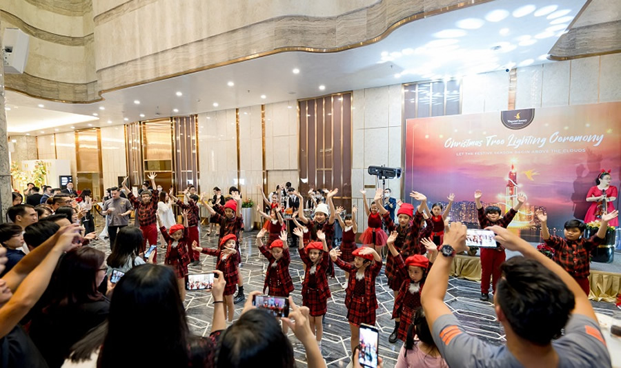 Không khí lễ hội đã hiện diện rực rỡ khắp chuỗi khách sạn Vinpearl cao kỷ lục tại các thành phố du lịch lớn nhất Việt Nam từ đầu tháng 12. Hàng loạt cây thông kích thước và kiểu dáng độc đáo trang hoàng lộng lẫy được thắp sáng lung linh tại sảnh chính, âm nhạc rộn ràng như lời mời gọi du khách đặt chân vào mùa yêu thương. Du khách vô cùng thích thú trước những bài trí, trang hoàng đặc trưng riêng như chú tuần lộc khổng lồ làm từ bánh macaron tại Lanmark 81, vòng trang trí, quả châu, ông già Noel… nhấn nhá chi tiết đặc trưng vùng miền hay tiểu cảnh mô phỏng Giáng Sinh thổ dân. Các cặp uyên ương có thể chọn được nghìn góc check-in thơ mộng tại những “điểm hẹn mùa lễ” này để lưu giữ kỷ niệm sánh đôi giữa không khí lạnh đang tràn về.