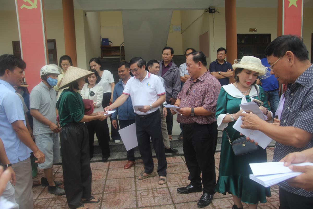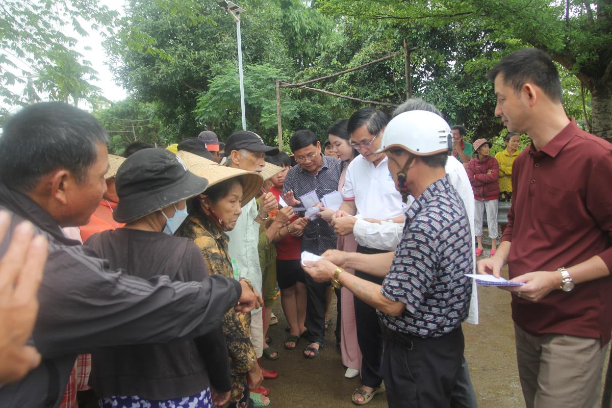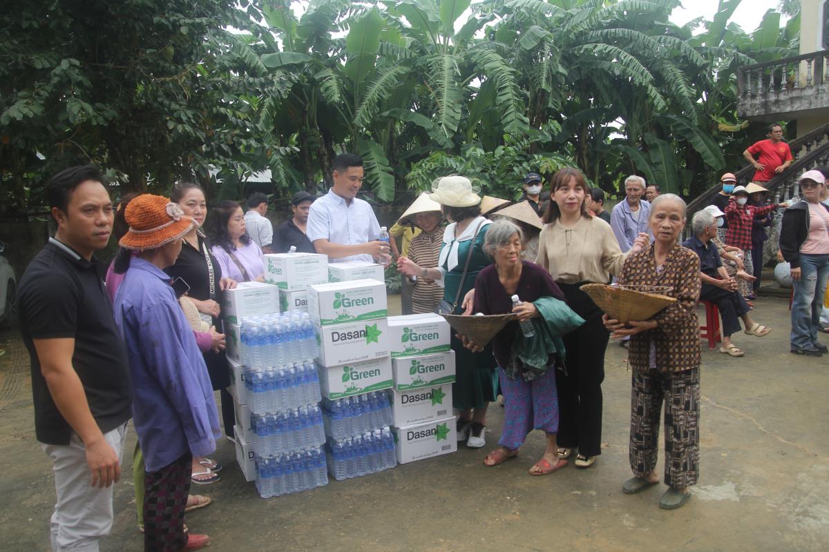 Trong cơn mưa nặng hạt ngắt quãng, đoàn dừng lại ở từng điểm dân cư bị thiệt hại nặng nhất. Những người con xa quê, phần lớn đang làm việc tại Đà Nẵng và cả những người từ TP Hồ Chí Minh (anh Dũng, Giám đốc Cty TNHH Đầu tư-Thương Mại Pha Lê) đáp vội chuyến bay sớm về đóng góp 100 triệu đồng cùng cộng đồng doanh nghiệp Thanh Khê và Hội đồng hương để tận tay trao cho từng người. “Mấy hôm trước nước còn ngập đến tận cổ, chồng tai biến nằm một chỗ, tôi cùng đứa con trai đang học lớp 12 phải dìu qua nhà hàng xóm cao hơn để tránh lũ. Giờ được nhận quà thế này là ấm lòng lắm,” bà Nguyễn Thị Tùng, ở thôn Lâm Tây (xã Hà Nha) nói khi nhận xong phần quà gồm 500.000 đồng tiền mặt và đồ dùng thiết yếu.