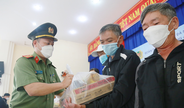 Tại đây, đoàn đã trao tặng 120 suất quà cho bà con có hoàn cảnh khó khăn do dịch bệnh COVID -19 với tổng số tiền hơn 50 triệu đồng. Thiếu tá Hồ Đình Trí – Bí thư Đoàn TN Công an TP cho biết, chương trình Xuân Tình nguyện năm 2022 sẽ được 100 các cơ sở Đoàn trực thuộc tổ chức tại nhiều địa phương trên địa bàn thành phố. Tổng kinh phí dự kiến cho tất cả các hoạt động là trên 800 triệu đồng.