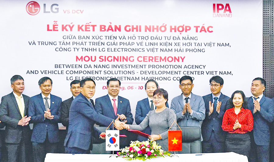 Lãnh đạo TP Đà Nẵng chứng kiến Lễ ký kết biên bản ghi nhớ về việc xây dựng Trung tâm Phát triển giải pháp về linh kiện xe hơi tại TP Đà Nẵng. |