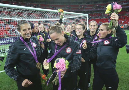 (Cadn.com.vn) - Hôm qua, các cô gái Mỹ đã giành tấm HCV môn đá nữ Olympic London 2012 một cách tuyệt vời. Bởi tấm HCV quý giá này đã đánh dấu thời khắc tuyệt vời khi đoàn VĐV Mỹ chính thức vượt mặt Trung Quốc trên bảng tổng sắp huy chương.