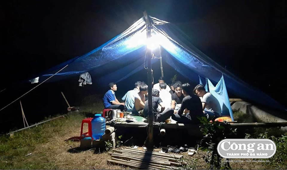 Người dân xã Dương Hòa lập lán trại xuyên đêm để canh cát "tặc". |