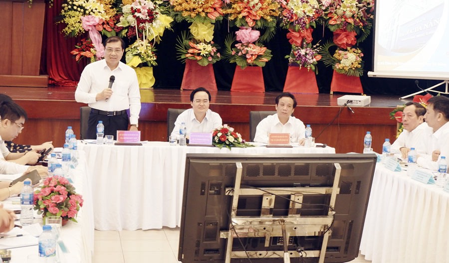 Phát biểu tại buổi làm việc, Chủ tịch UBND TP Huỳnh Đức Thơ cho biết, lãnh đạo TP rất quan tâm, đã nhiều lần đưa vấn đề liên quan đến Dự án treo hơn 20 năm này ra tại các cuộc họp với Chính phủ. Sau một thời gian dài bị quy hoạch treo, cùng với những tín hiệu khả quan về nguồn vốn trung hạn đang chờ Quốc hội thông qua, Chủ tịch Huỳnh Đức Thơ cho rằng, cái khó nhất hiện nay chính là công tác giải tỏa đền bù, TĐC. Trong đó, phần nặng nhất thuộc về phía tỉnh Quảng Nam. Về phần thuộc địa phận Đà Nẵng, Chủ tịch TP khẳng định có thể yên tâm và cho biết Đà Nẵng đã quyết định đầu tư ngay khu TĐC 22 ha đất, giao Trung tâm phát triển quỹ đất thực hiện công tác này. Trước mắt sẽ dùng tiền của TP để đầu tư. Về việc giải ngân nguồn vốn trung hạn 1.000 tỷ đồng sau khi được Quốc hội thông qua, Chủ tịch TP đề nghị Bộ GD-ĐT phải có sự phân công, chỉ đạo cụ thể. Nếu giao cho ĐH Đà Nẵng thì phải có Ban, bộ phận chuyên lo vấn đề này, phải bám sát các bộ ngành, các cơ quan TƯ, địa phương để thúc đẩy tiến độ, không thể để chậm trễ hơn nữa. Cũng theo Chủ tịch TP Huỳnh Đức Thơ, trong quá trình triển khai thực hiện dự án cần tính đến hướng xã hội hóa nhằm bổ sung nguồn lực đầu tư, không thể phụ thuộc hoàn toàn vào ngân sách Trung ương...