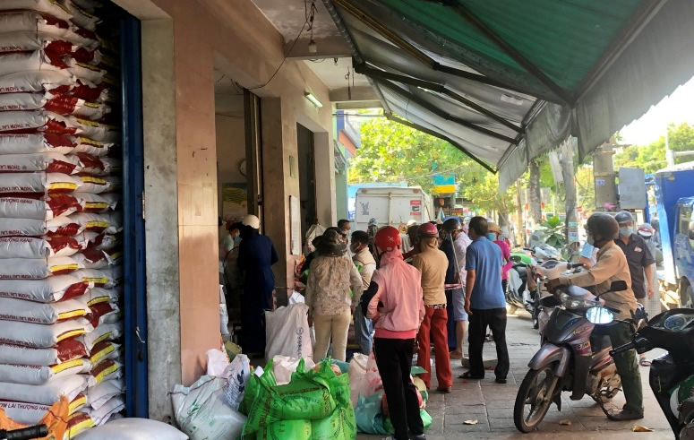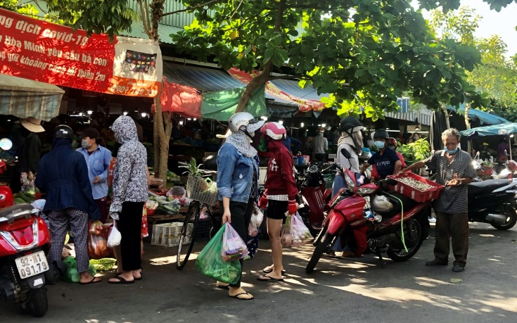 Từ sáng sớm 30/7, người dân trên địa bàn TP Đà Nẵng bắt đầu đổ xô đến các chợ để, cửa hàng tạp hóa… để mua lương thực tích trữ. Một người dân ở Khu đô thị sinh thái Hòa Xuân phản ánh, tại chợ Hòa Xuân (P.Hòa Xuân, Q.Cẩm Lệ) chỉ tầm khoảng hơn 8 giờ sáng nhưng mặt hàng thịt heo đã bán hết. “Xếp hàng hơn 20 phút nhưng vẫn không mua được thịt. Biết thế đi chợ từ 5 giờ sáng”, người này càu nhàu. Chị Phan Thị T., nhà ở đường Hải Hồ (P.Thanh Bình, Q.Hải Châu), chia sẻ thêm: Tại chợ Đống Đa, người dân đổ xô đi chợ mua sắm từ sáng sớm. Đến 8 giờ 30 gần như các quầy cá, thịt trong chợ “cháy hàng”.