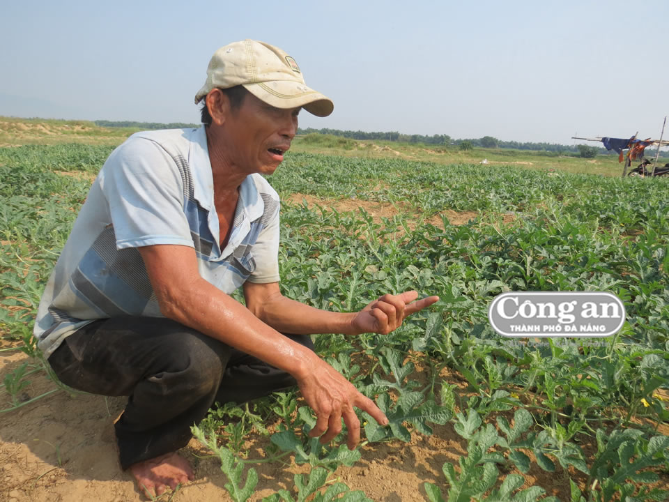 8 giờ, khi ánh nắng bắt đầu gay gắt cũng là lúc ông Hưng (58 tuổi) ra đồng tưới nước cho dưa. Mảnh đất rộng 4 sào của gia đình ông nằm trên bãi bồi ven sông Thu Bồn tiếp giáp giữa huyện Duy Xuyên và xã Điện Quang (TX Điện Bàn). Mỗi năm ông làm hai vụ dưa hấu tròn vào tháng 2 và tháng 5 âm lịch. Để có nước tưới dưa, ông và một số người lân cận đã chung nhau đóng giếng nước. Ông nói: "Cực khổ như vậy chỉ mong cho dưa được mùa". Nhờ trời, xứ bãi bồi này nổi tiếng cho ra loại dưa ngon ngọt, rất ít khi mất mùa. Chỉ có năm 2017 lũ lụt trái mùa khiến dưa ngập nước. Mà hồi đó, không chỉ riêng ông, dưa toàn tỉnh Quảng Nam úng nước cũng đành phải đổ bỏ.