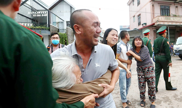 Gia đình trung úy Lê Cao Cường đến đầu tiên, từ ngóng đợi thành nước mắt, họ khóc mỗi khi có xe quân sự, xe cấp cứu chạy nhà thi đấu. Lực lượng chức năng phải an ủi và động viên gia đình.