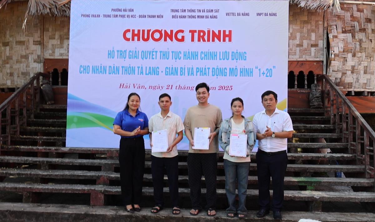 Sáng 21-8, tại nhà Gươl Tà Lang, Phòng Văn hóa xã hội - Trung tâm Dịch vụ Hành chính công - Đoàn Thanh niên phường Hải Vân phối hợp với Trung tâm thông tin và giám sát điều hành thông minh Đà Nẵng, Chi nhánh Viettel và Vinaphone Đà Nẵng tổ chức chương trình hỗ trợ giải quyết thủ tục hành chính (TTHC) lưu động cho người dân thôn Tà Lang và Giàn Bí, phường Hải Vân (TP Đà Nẵng).