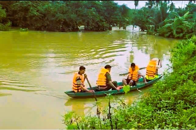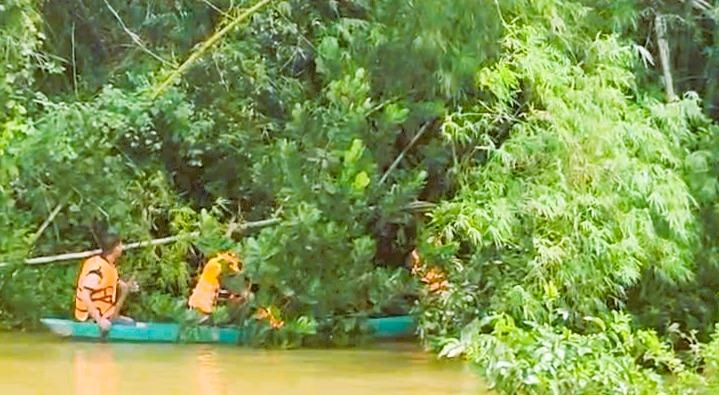 Ngay lập tức, Thiếu tá Võ Tấn Quang dừng phương tiện, vào nhà dân mượn chiếc ghe, tự trang bị áo phao rồi cùng người dân bơi ngược dòng nước xiết.