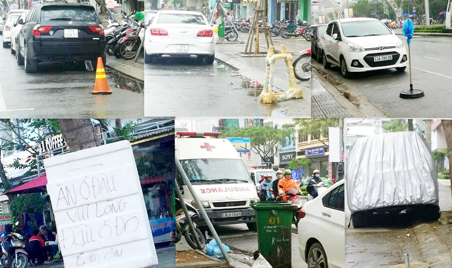 | Những kiểu vật cản chặn xe của các chủ nhà trên một số tuyến phố tại Đà Nẵng. |