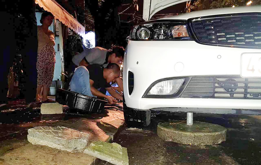 Không chỉ riêng câu chuyện của chị Hiền, vài hôm trước, cư dân mạng ở Đà Nẵng cũng không ngớt bàn tán câu chuyện của chị Đào Ý Nhi (trú Q. Ngũ Hành Sơn, Đà Nẵng) khi điều khiển ô-tô lưu thông trên đường Nguyễn Bá Học (Q. Hải Châu) thì sập “bẫy” chắn của người dân để dưới lòng đường để ngăn không cho ô- tô dừng, đỗ. Tiếp xúc với chúng tôi, anh Phạm Đức Công, người đi cùng xe với chị Nhi kể lại: “Khi chúng tôi lưu thông trên đường Nguyễn Bá Học, đến trước nhà số 42 thì bạn tôi tránh xe ngược chiều nên đánh lái sát lề thì va vào vật gì đó nên phải dừng xe. Xuống kiểm tra, mọi người phát hiện thấy ngay dưới gầm xe dính vật cản, kiểu như cán dù loại lớn hay dùng ở quán cà-phê”. Do không thể lùi hay tới, buộc lòng chị Nhi và anh Công phải gọi xe cứu hộ đến hỗ trợ. Lúc này có một người đàn ông nói là chủ nhà số 42 xuất hiện và nói năng rất khó nghe: “Ta để đấy ai biểu lái xe vô. Cho kinh”.