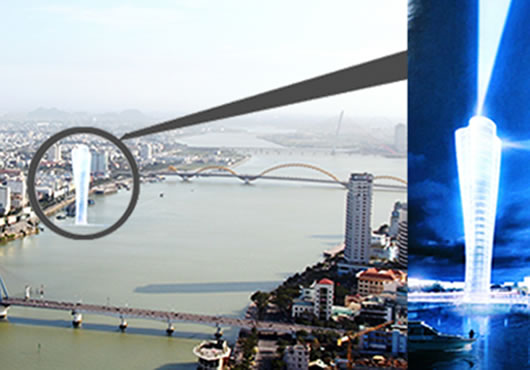 Mô hình và vị trí dự kiến xây dựng “hải đăng” trên sông Hàn, nay TP Đà Nẵng |