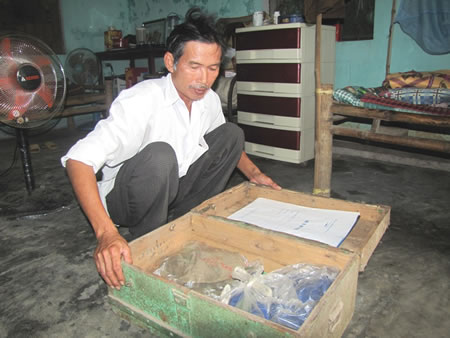 ...anh Thảo bên chiếc rương lưu giữ những kỷ vật của người em họ. |