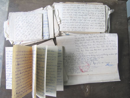 Cuốn nhật ký và những bức thư anh Cường gửi về cho gia đình. |