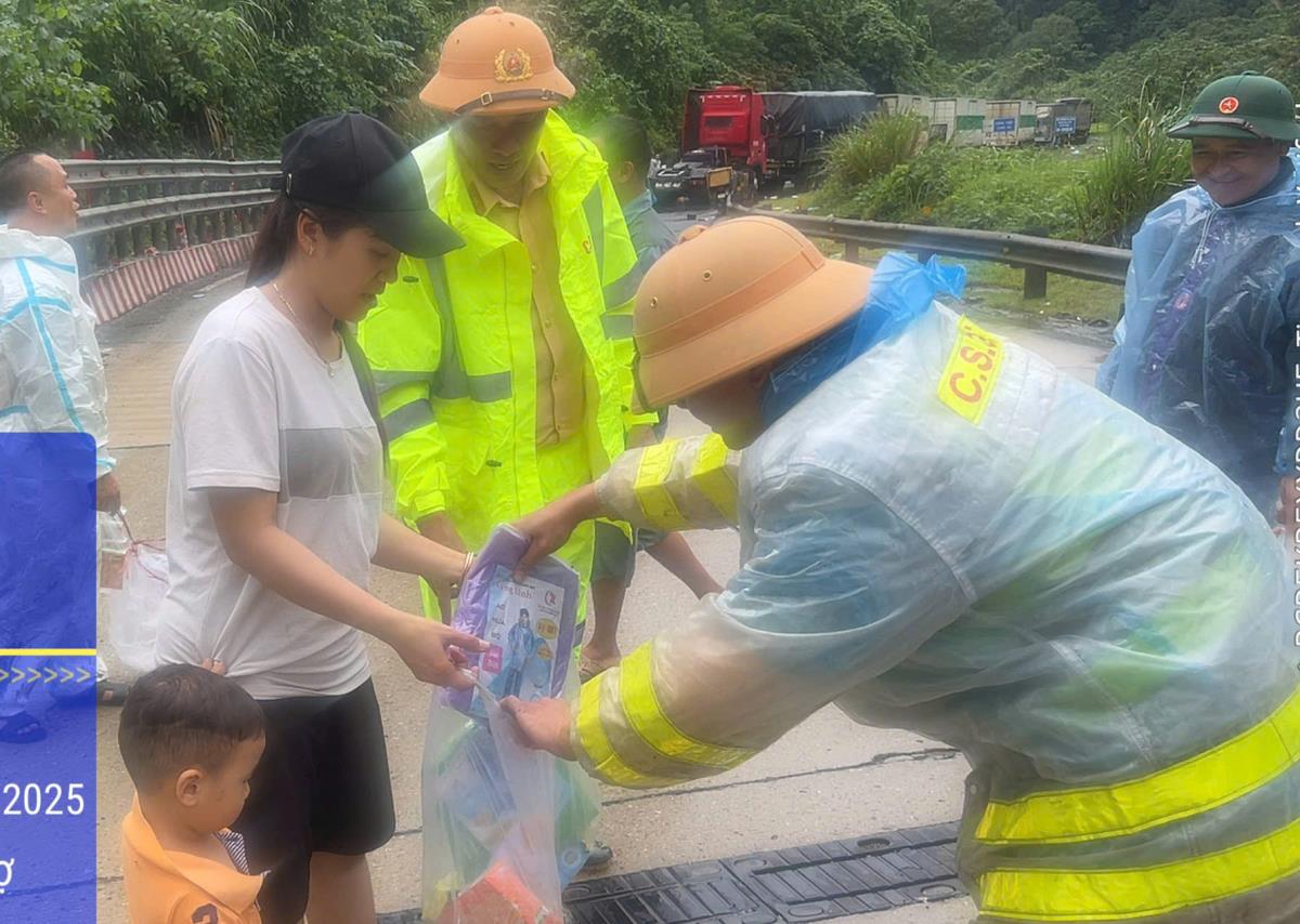 Trong ngày 28-10, Cảnh sát giao thông Công an thành phố Đà Nẵng, Công an tỉnh Quảng Ngãi cùng người dân địa phương đã tổ chức tiếp tế lương thực và nước uống cho các tài xế, phụ xe đang bị cô lập giữa hai điểm sạt lở. Một số đơn vị còn sử dụng thiết bị bay không người lái (drone) để vận chuyển thực phẩm, nước uống đến những khu vực không thể tiếp cận bằng đường bộ.