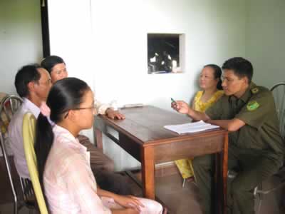 Trưởng CAX Hương Toàn thăm hỏi 1 hộ giáo dân ở Dương Sơn. |
