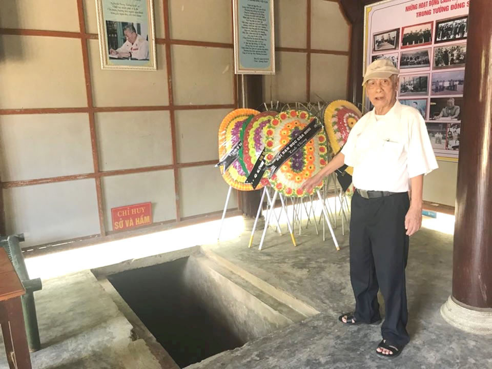 Ông Phan Văn Đệ và căn hầm trú ẩn. |
