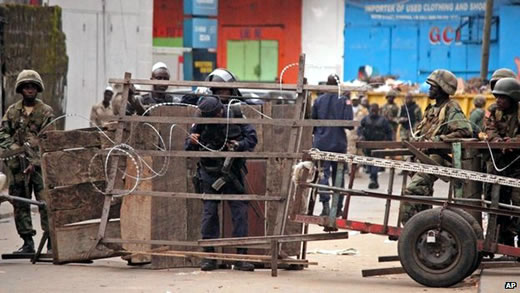 | Quân đội chặn đường vận chuyển hàng hóa và người lao động. Ảnh: BBC |