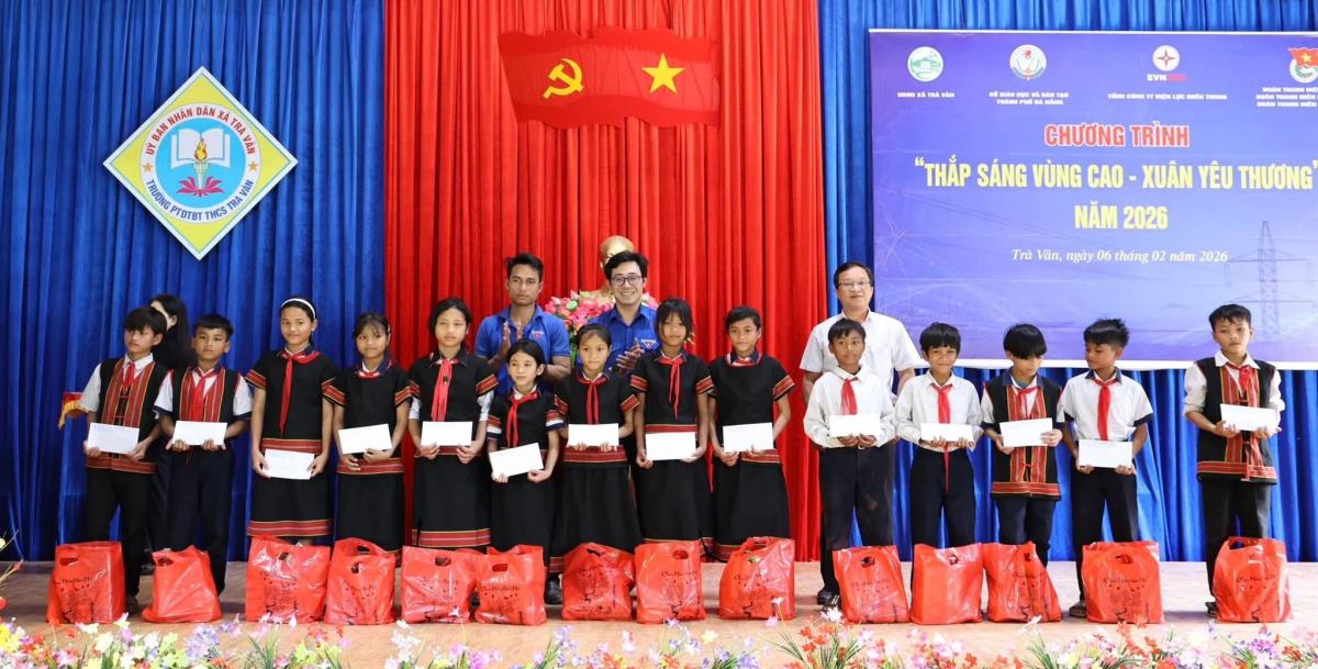 Ngày 6-2, tại Trường Phổ thông Dân tộc bán trú THCS Trà Vân (xã Trà Vân, TP Đà Nẵng), Tổng công ty Điện lực miền Trung (EVNCPC) phối hợp với Sở Giáo dục và Đào tạo TP Đà Nẵng tổ chức chương trình an sinh xã hội “Thắp sáng vùng cao-Xuân yêu thương” năm 2026.